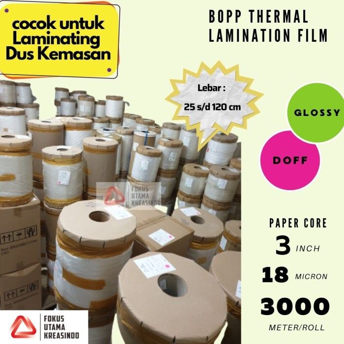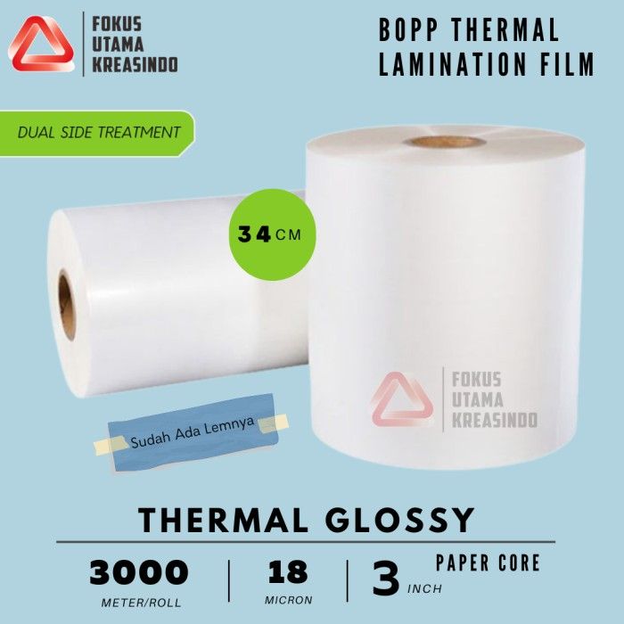 Roll Plastik Laminating Thermal Glossy 34cm 18mic mesin offset