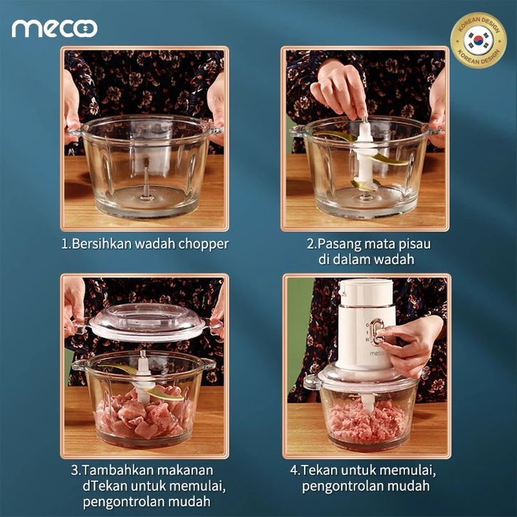 Mecoo Most Aesthetic 5 in 1 Antibacterial Odorless Chopper 250 Low Watt / blender philips blender miyako blender cosmos