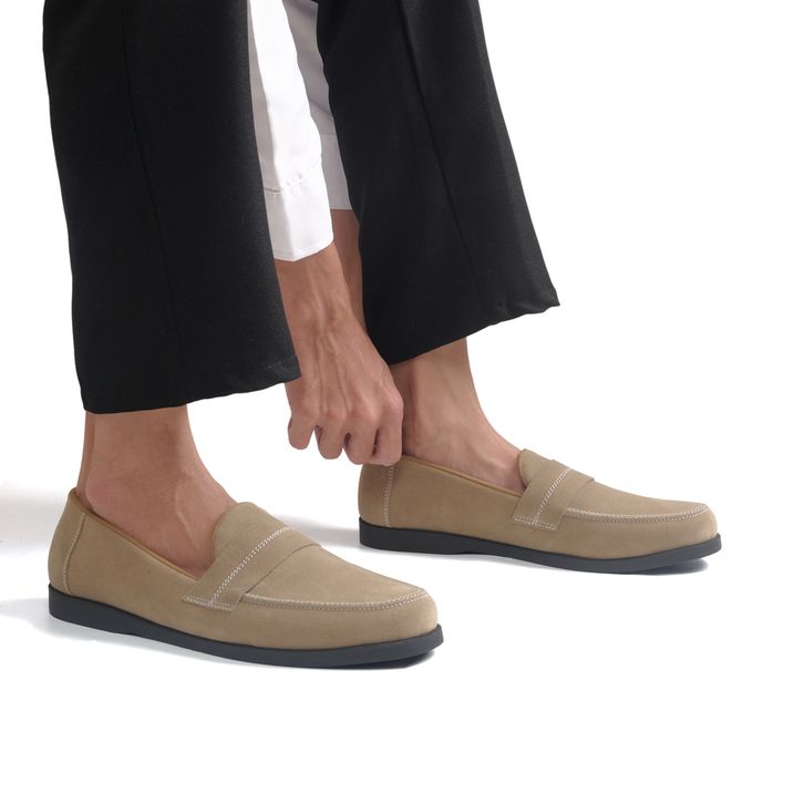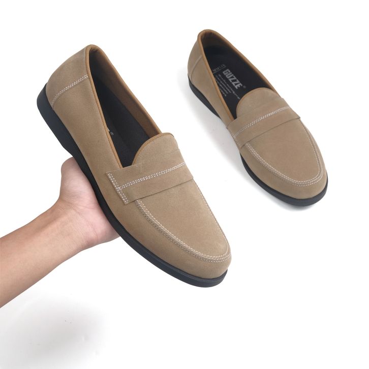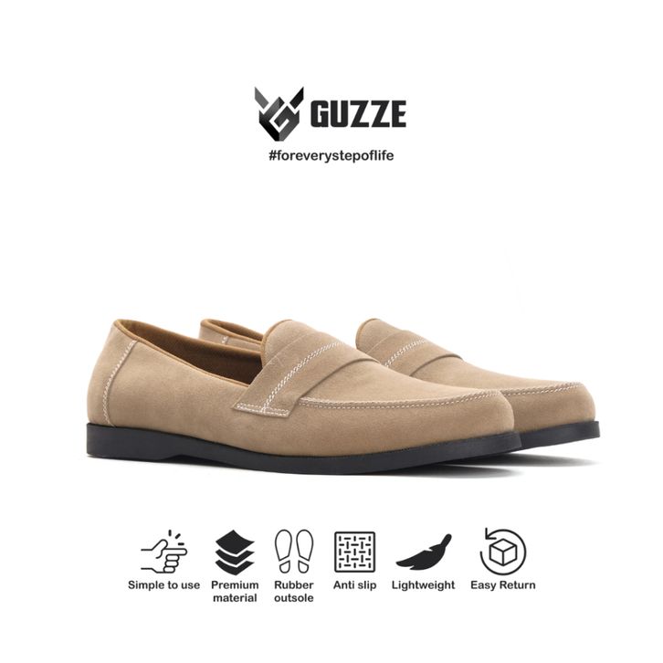 Terlaris Sepatu Slip On Loafers Suede Pria Guzze Lucci Cream Casual