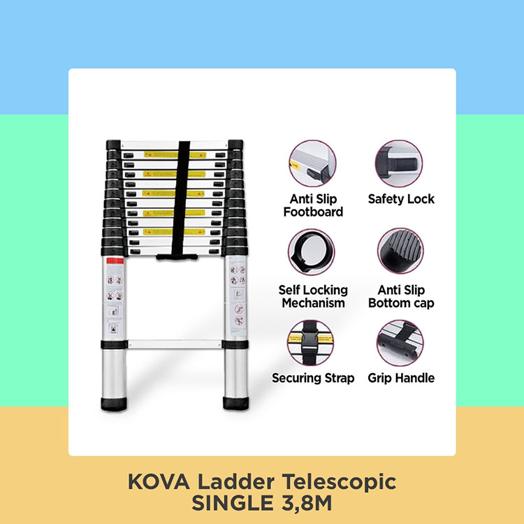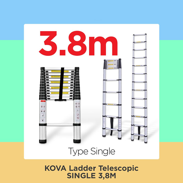 Tangga Lipat Teleskopik Aluminium 3.8m Single Telescopic Ladder Kova Original