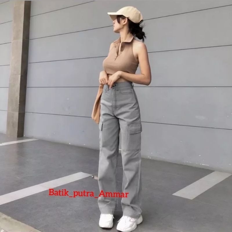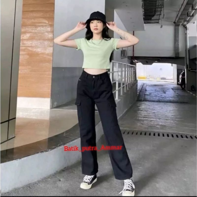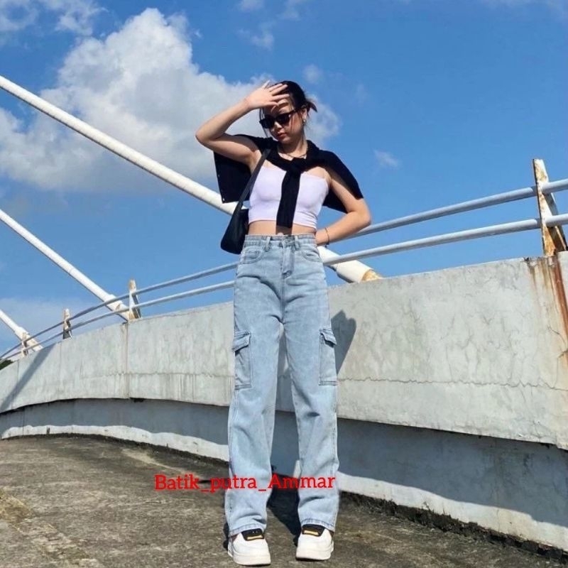 (Gratis Ongkir) Celana Jeans Wanita Cargo Highwaist Kulot loose
