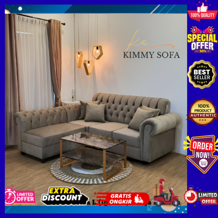 [Star]sofa ruang tamu sofa ruang tamu minimalis SOFA L Classic Madona Kancing L Putus Chesterfield Bahan Bludru 3 Seater
