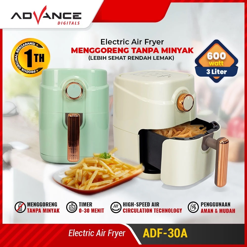 Advance Air fryer ADF-30A 3Liter 600 watt Hemat Listrik Menggoreng Tanpa Minyak