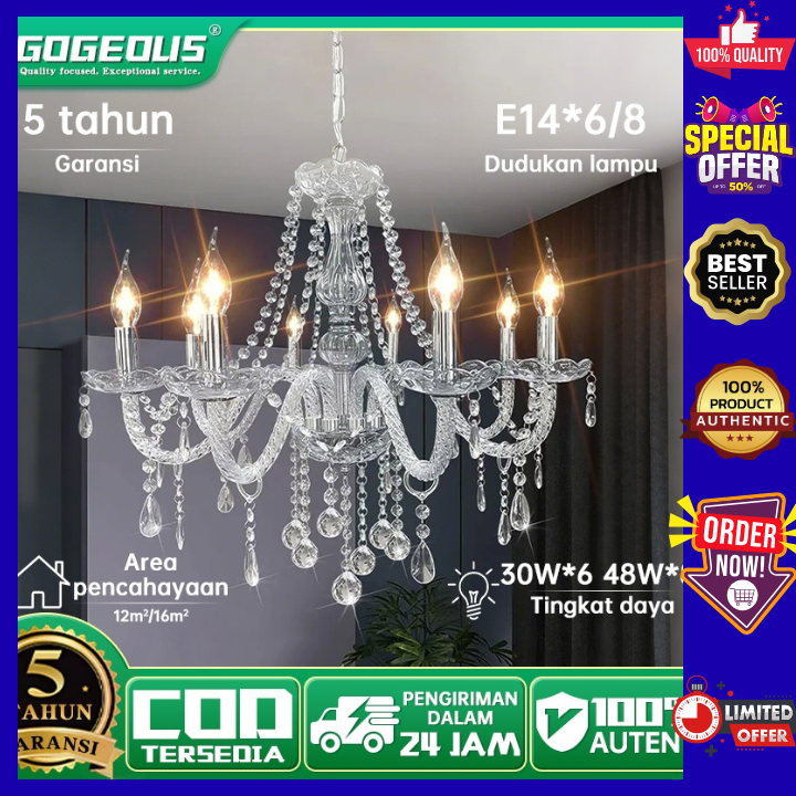 [Star]Lampu Gantung Ruang Tamu 30&48 Watts Lilin Cabang 6&8 Cocok Untuk Ruang Tamu Dan Auditorium Lampu Gantung Kristall