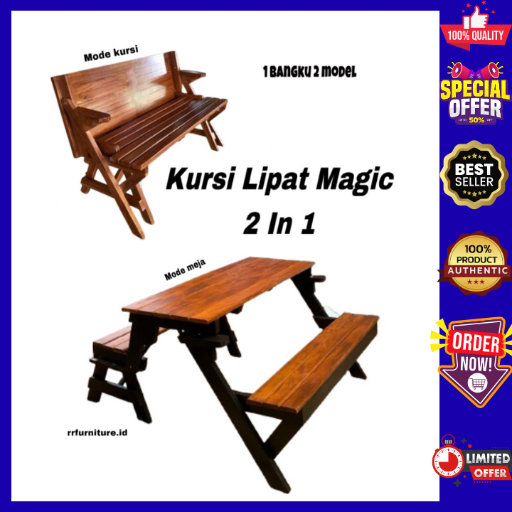 [Star]Kursi Magic Lipat Bisa Jadi Meja 2 In 1 / Kursi Taman / Meja Taman / Kursi Lipat / Meja Cafe / Meja Lipat