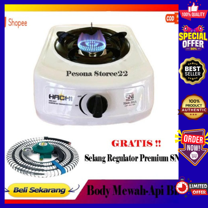 [Star]Kompor Gas SNI 1 Tungku warna putih + bonus free selang regulator paket Dan GRATIS ONGKIR mantap ori