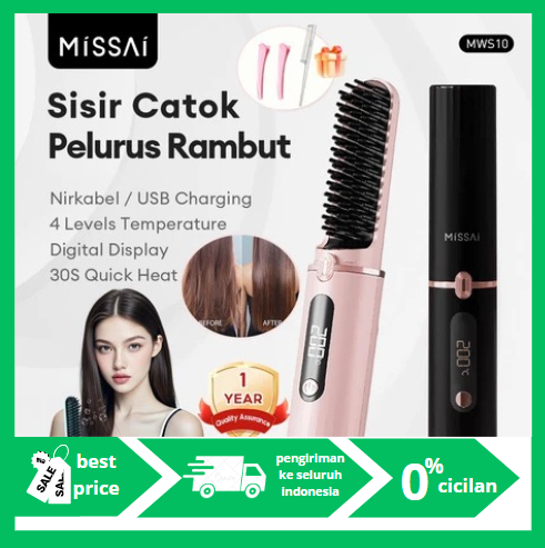 MISSAI 2 In 1 Sisir Catok Pelurus Rambut Elektrik Tanpa Kabel / Comb Sisir Pelurus Rambut Tanpa Kabel Cordless 4 Tingkat