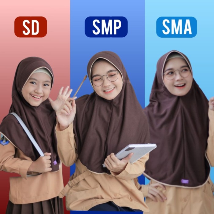 KERUDUNG HIJAB SEKOLAH ANAK SD SMP SMA PRAMUKA INSTAN - SD (KLS 1-3), COKELAT (PRMKA)