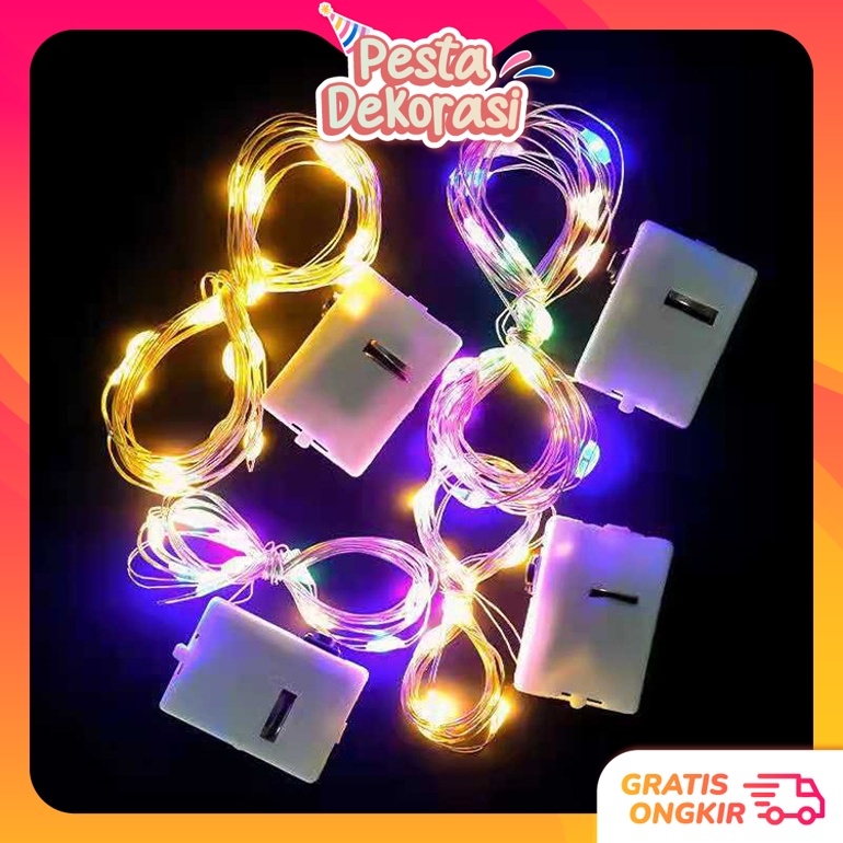 PESTA DEKORASI L5420 Lampu Natal Hias 1M 2M 3M 5M / Lampu Tumblr Kawat Hias Dekorasi Baterai 1m 2m 3m 5m / Lampu Kawat LED 1 & 2 Meter Warm White Lampu Tumblr Hias Parcel Seserahan Pengantin