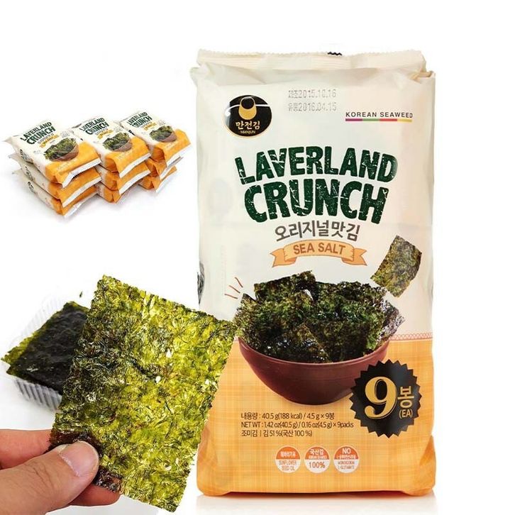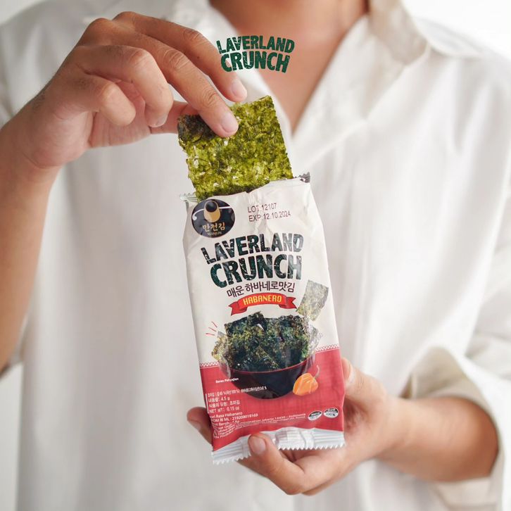 Camilan Makanan Ringan Snack Import Korea Laverland Crunch Seaweed Rumput Laut 40.5 Gr Wasabi, Hot Spicy Cheese Sea Salt