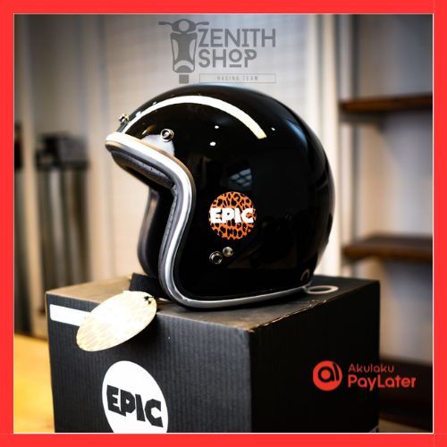 Epic Veil Helmet Open Face Basic Black Glossy White Glossy List Chrome Helm Half Face SNI