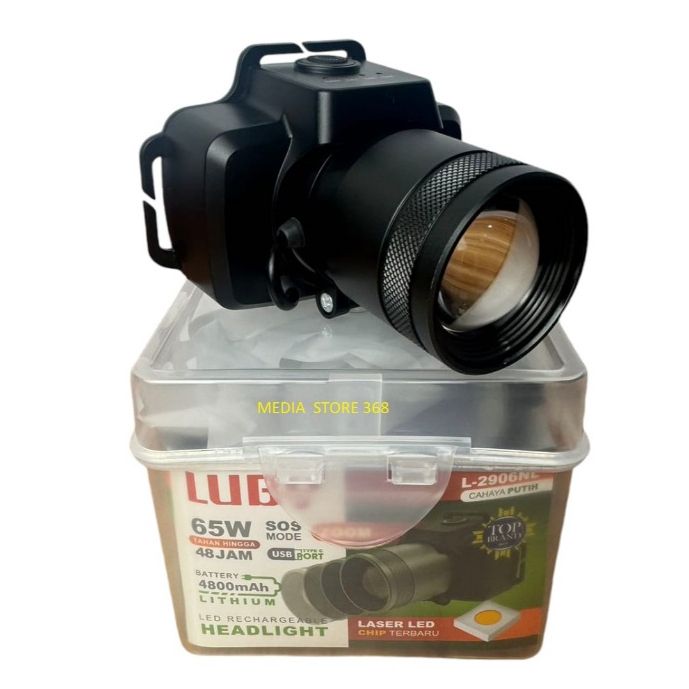 SENTER KEPALA ZOOM LASER LED 65W LUBY L-2906NL - SUPER TERANG - JARAK JAUH - TAHAN LAMA - TYPE-C