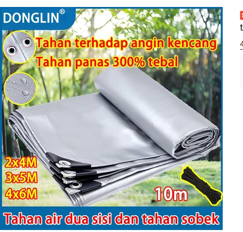 DONGLIN terpal ukuran 4x6 meter/3x5m/2x4m Gratis tali 10m 100% tahan air Yg tahan hujan Tahan panas dan beku mengentalka