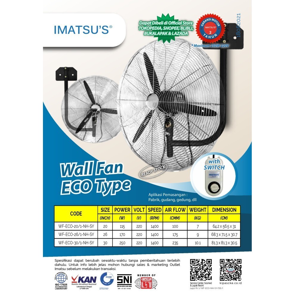 WALL FAN IMATSU 26 INCH KIPAS ANGIN DINDING TEMBOK RUMAH KIPAS INDUSTRI