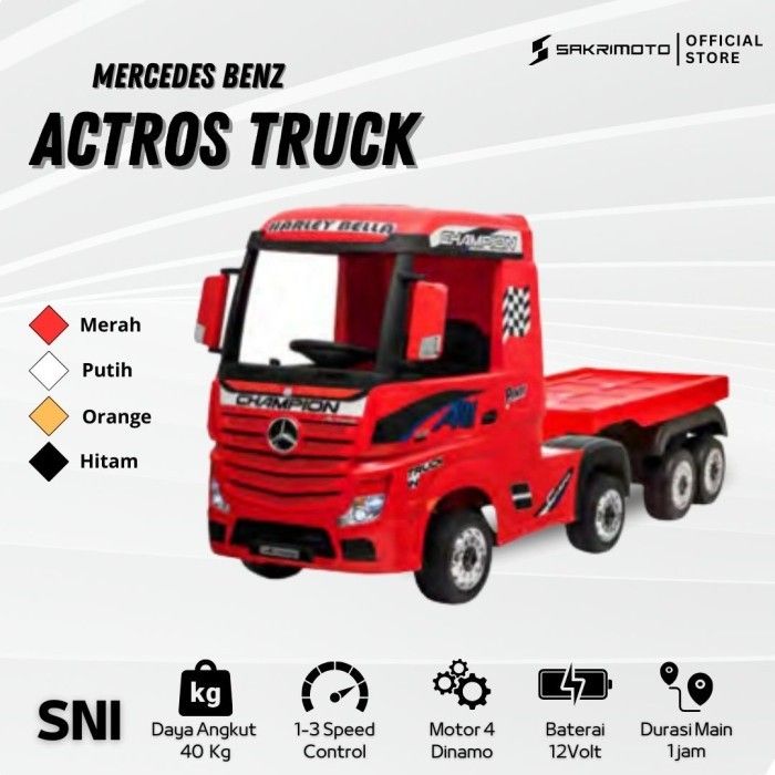 Mainan aki Licensed Mercedes Actros 051C JUMBO TRUCK bisa dinaiki anak GZZ Putih T Merah