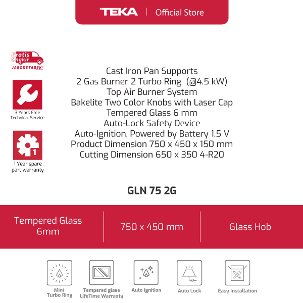 Kompor tanam gas 2 tungku Linea Teka GLN 75 2G