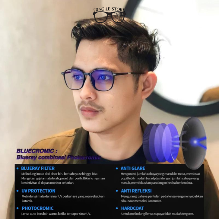 Kacamata Photocromic Anti Radiasi Kacamata Minus Plus Pria Wanita Frame Bulat Cat Eye Bluecromic Best Seller
