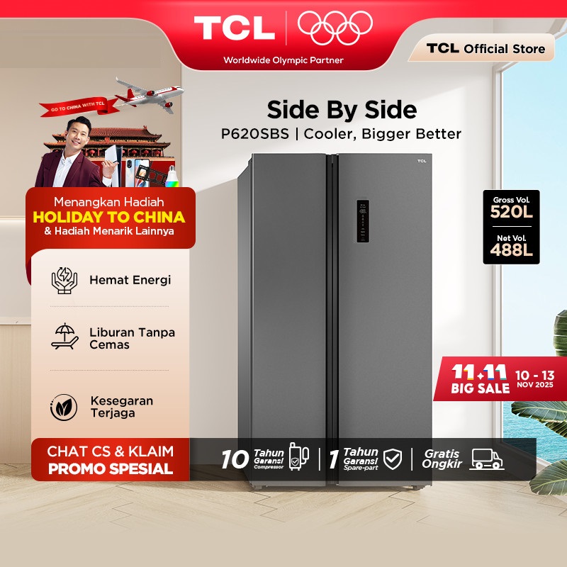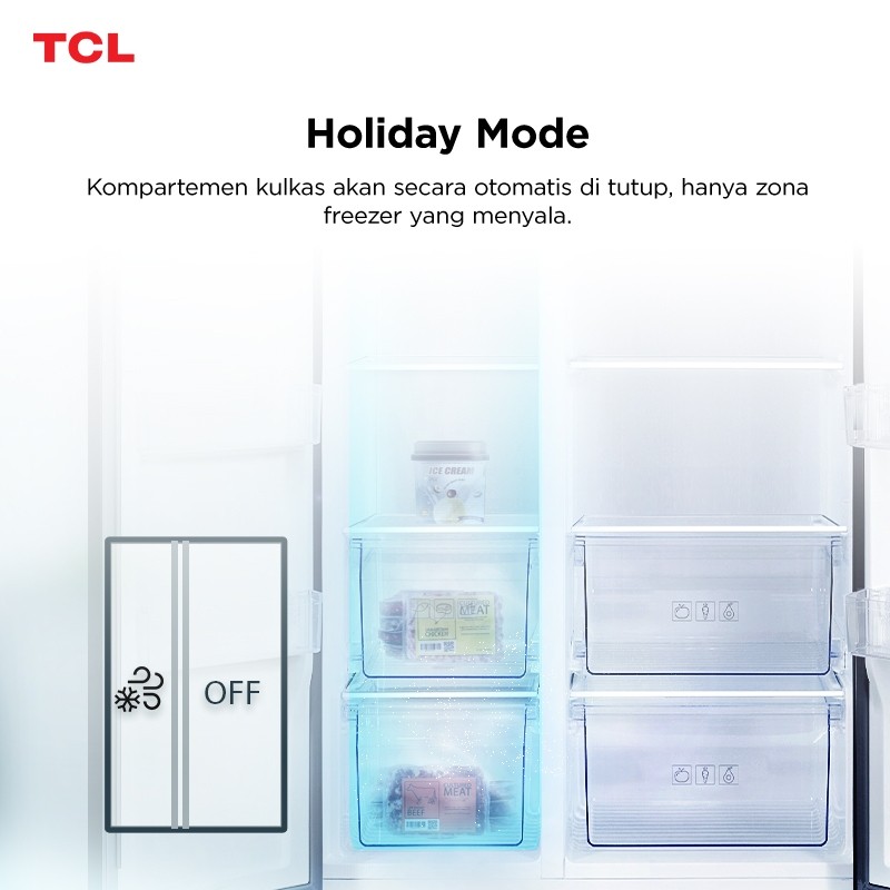 [Mall] KULKAS 2 PINTU TCL SIDE BY SIDE KAPASITAS 520L TWIN ECO INVERTER AAT GEN 2 NATURAL ECO FRESHNESS TANPA BUNGA ES C