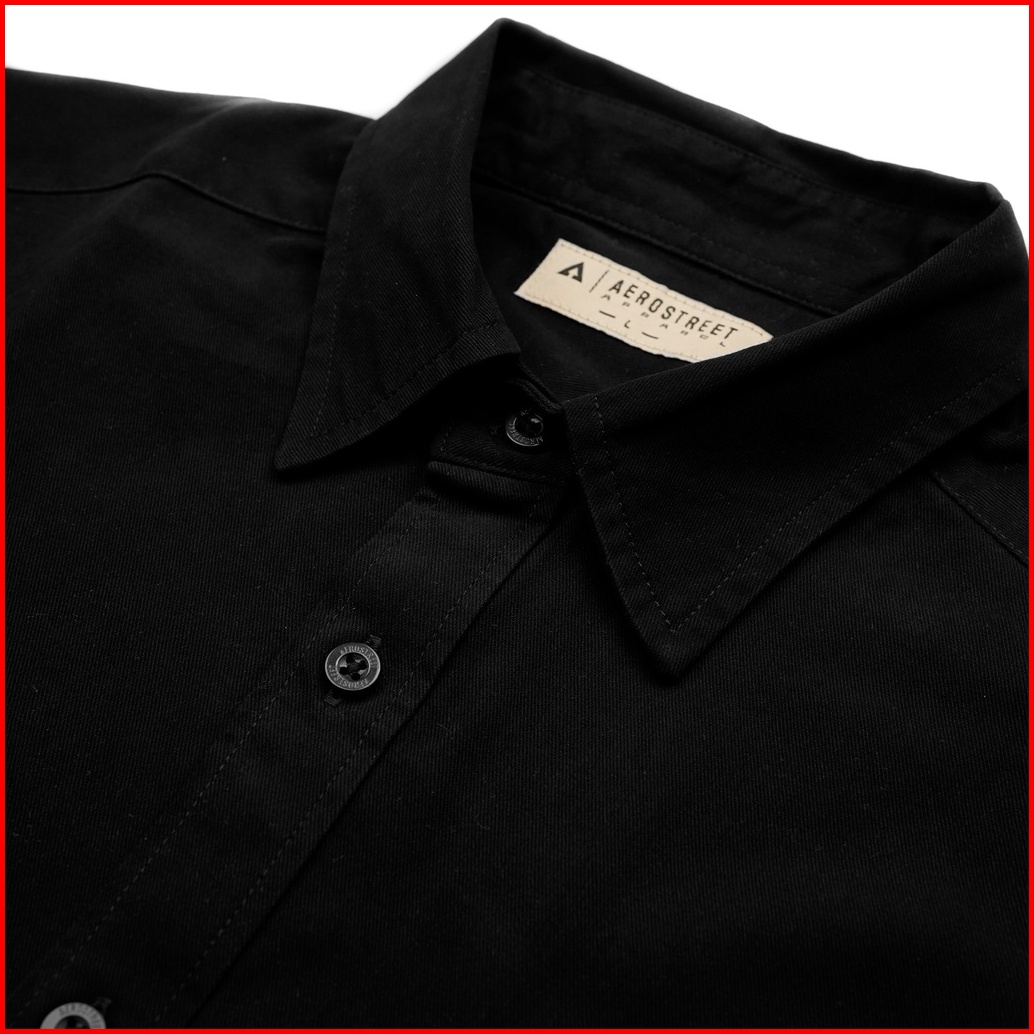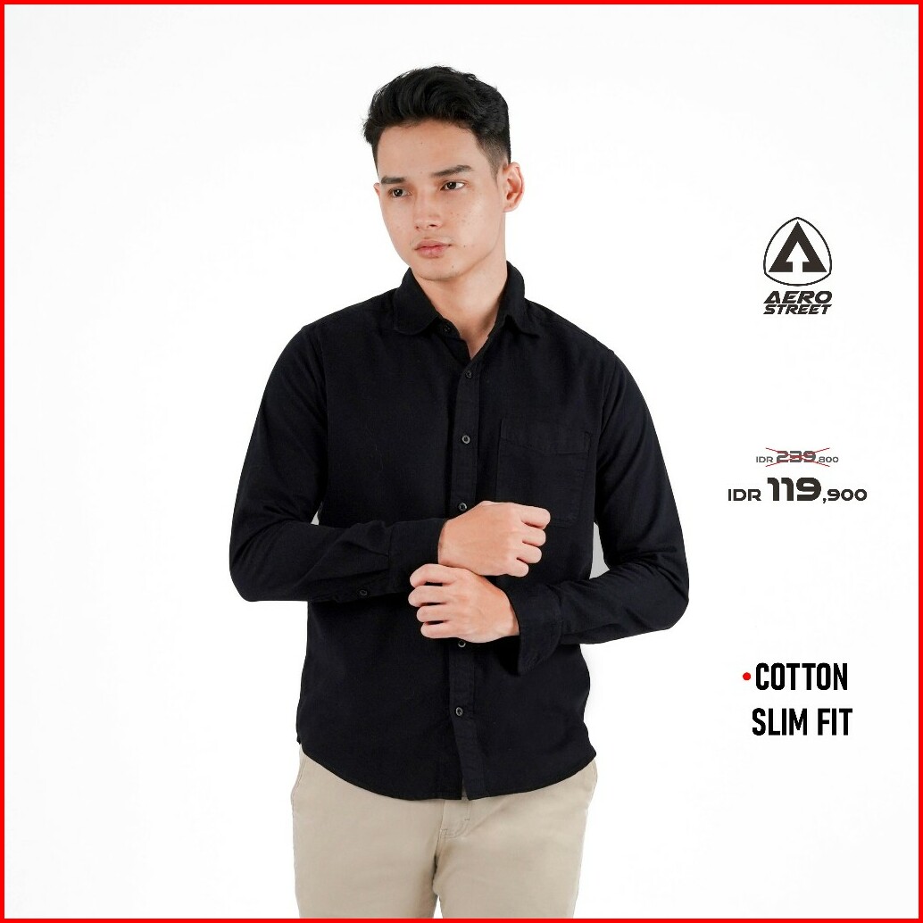Aerostreet Kemeja Cotton Panjang Ravel Black Polos Gelap Qbaba