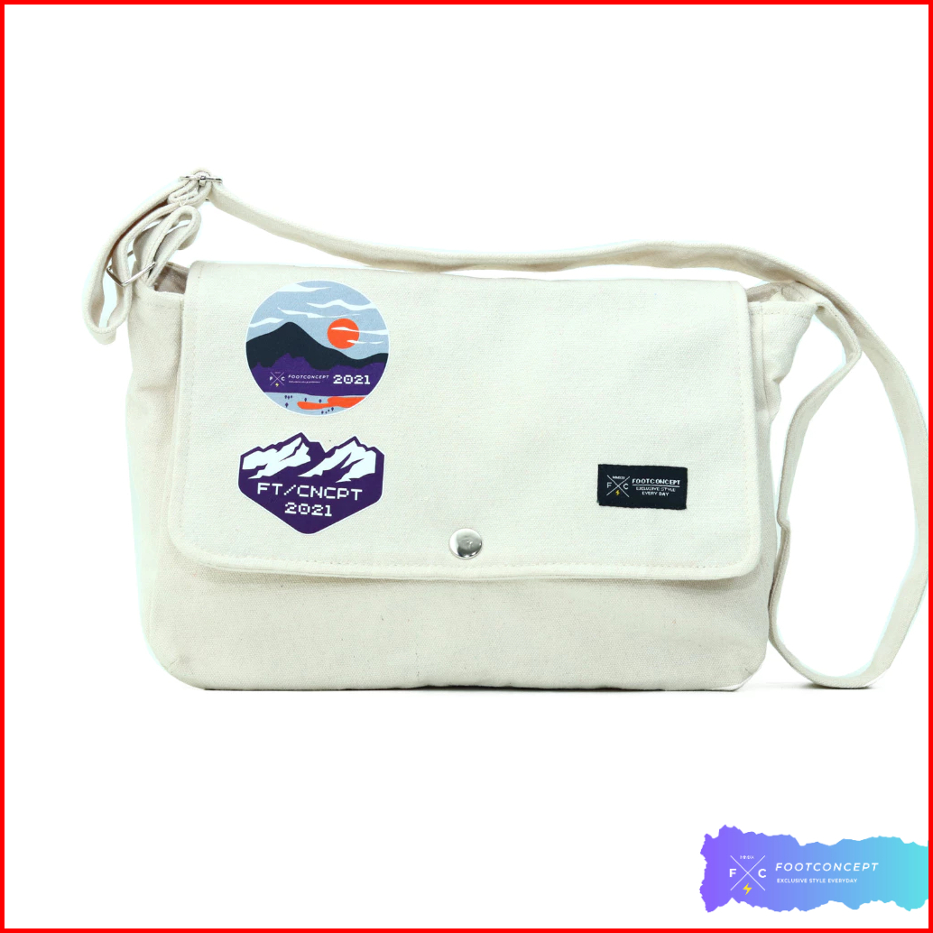 Footconcept - Tas Sling Bag Kanvas Pria Wanita Tas Selempang Cewe Cowok Kasual Cityscape Series