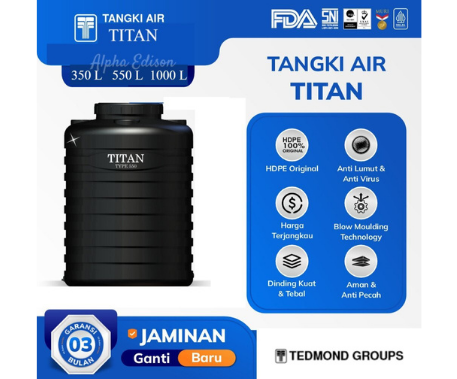 MS - Toren Air Titan 350 liter - 550 Liter - 1000 Liter HDPE - Gratis Ongkir JABOTABEK