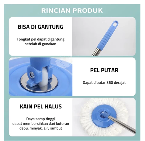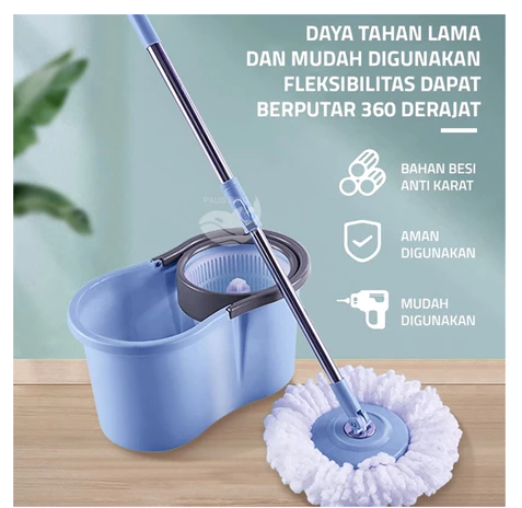 Alat Pel Lantai Stainless Super Mop Dengan Ember Pencuci Putar 360°