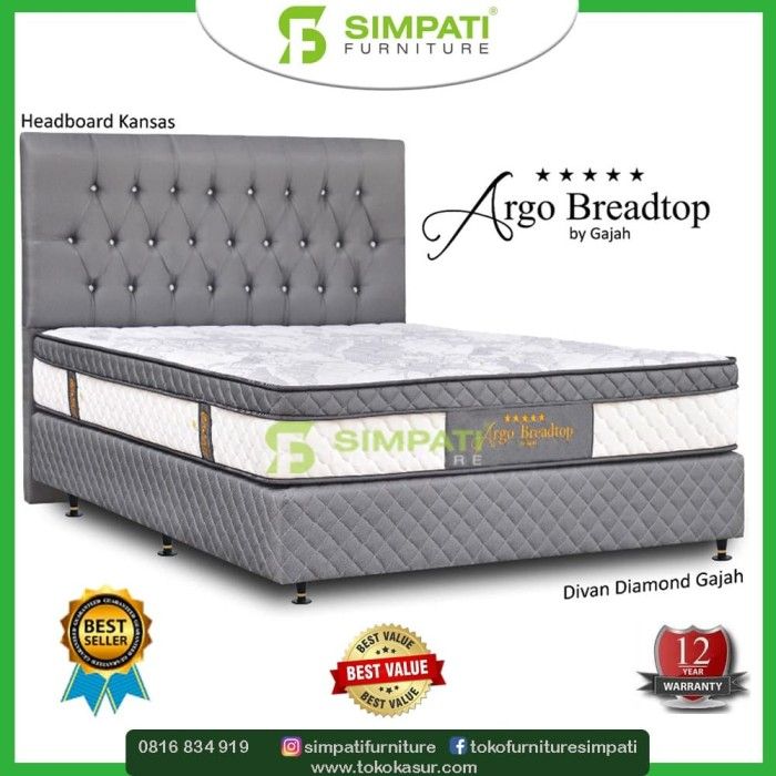 Spring Bed GAJAH ARGO BREADTOP (Kansas Abu-Abu) Komplit Set - 200x200