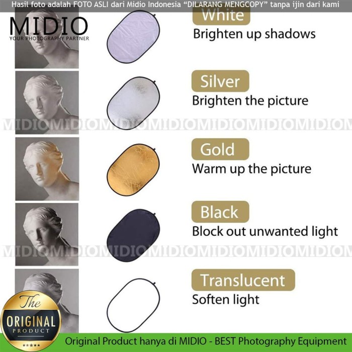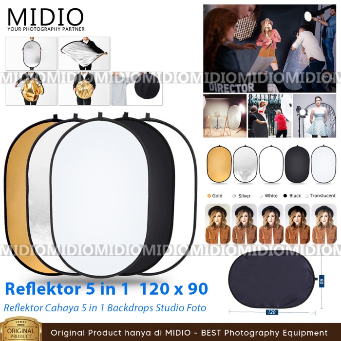 REFLECTOR STUDIO FOTO 5IN1 OVAL MIDIO UKURAN 120X90 UNTUK REFLEKTOR