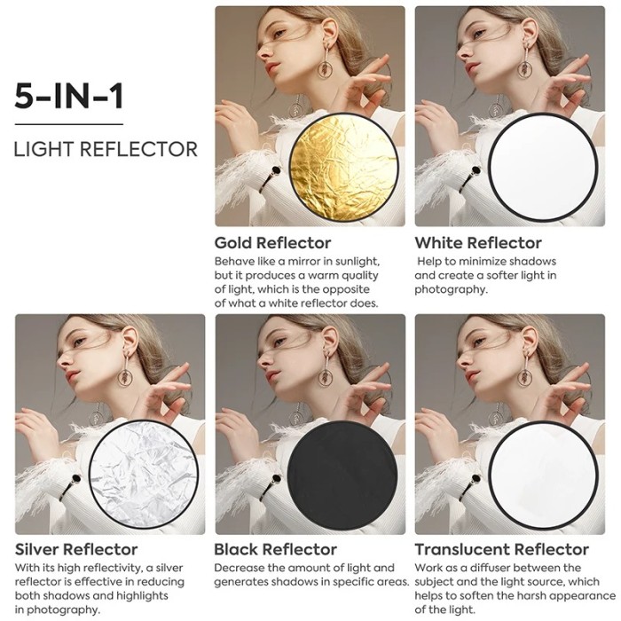 REFLEKTOR CAHAYA STUDIO FOTO 5 IN 1 ORIGINAL - 2IN1 / 60CM SW