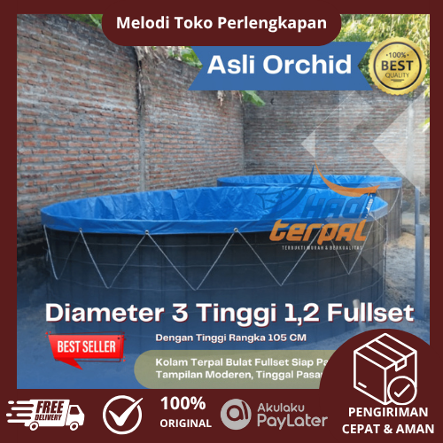 KOLAM TERPAL BULAT FULLSET DIAMETER 3 TINGGI 1,2 MERK ORCHID KOLAM IKAN SIAP PAKAI SUDAH LENGKAP