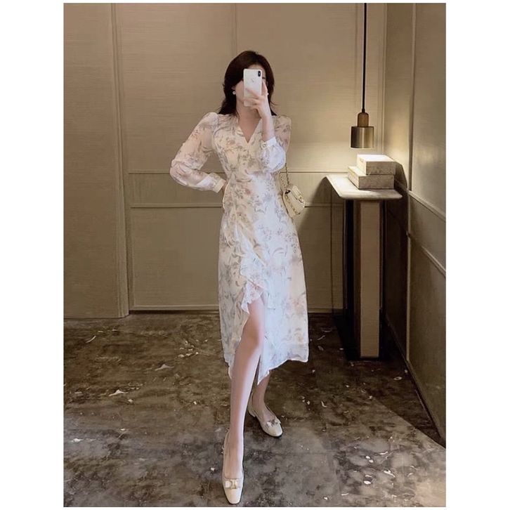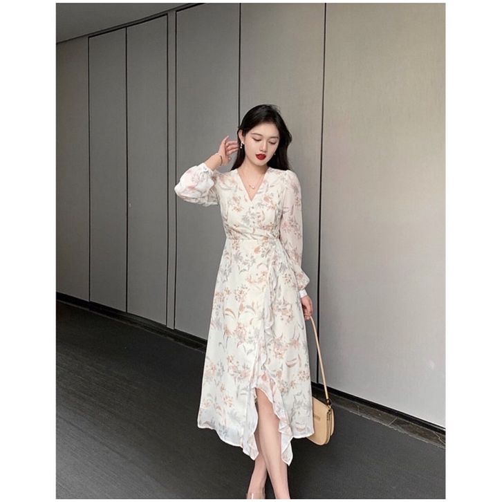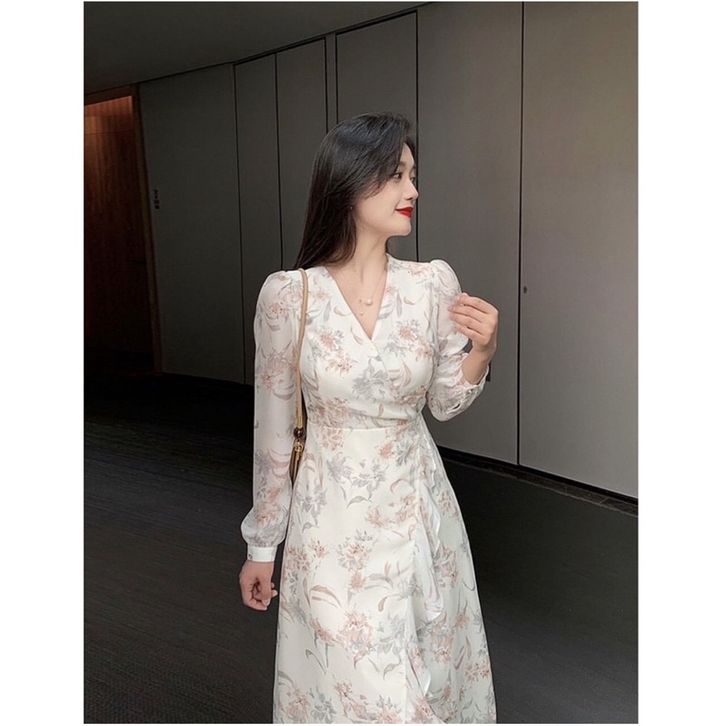 [ADA SIZE JUMBO] D0981 SILAPAN KOREAN STYLE FLORAL VINTAGE MIDI DRESS LENGAN PANJANG PANTAI