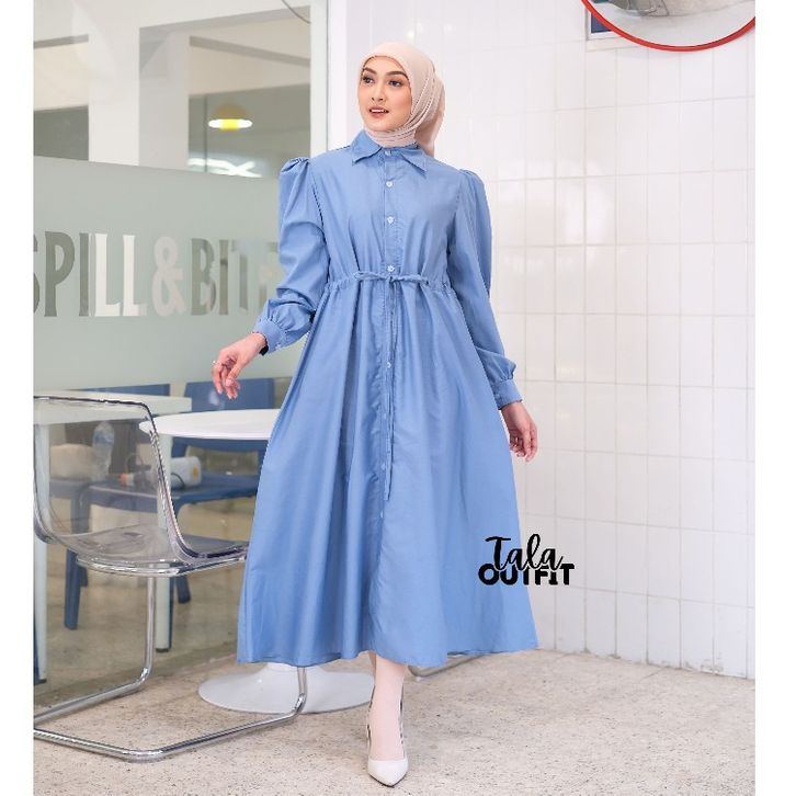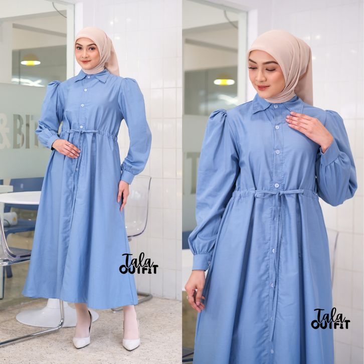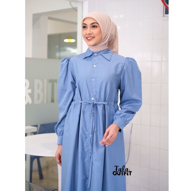 Tala Outfit - BIANCA Kemeja Midi Dress Poplin Twill Full Kancing Busui Friendly Midi Korean Style