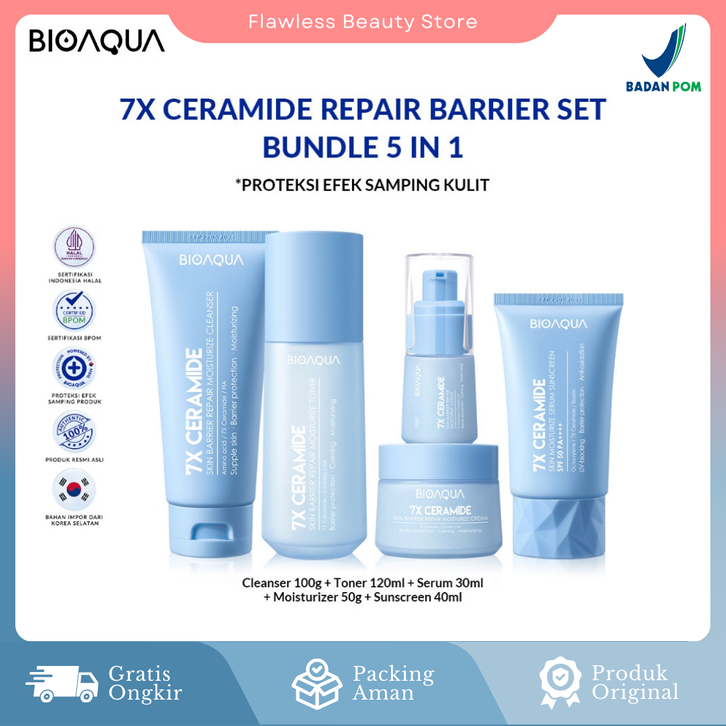 PAKET SKINCARE BIOAQUA 7X CERAMIDE REPAIR BARRIER SUNSCREEN WAJAH