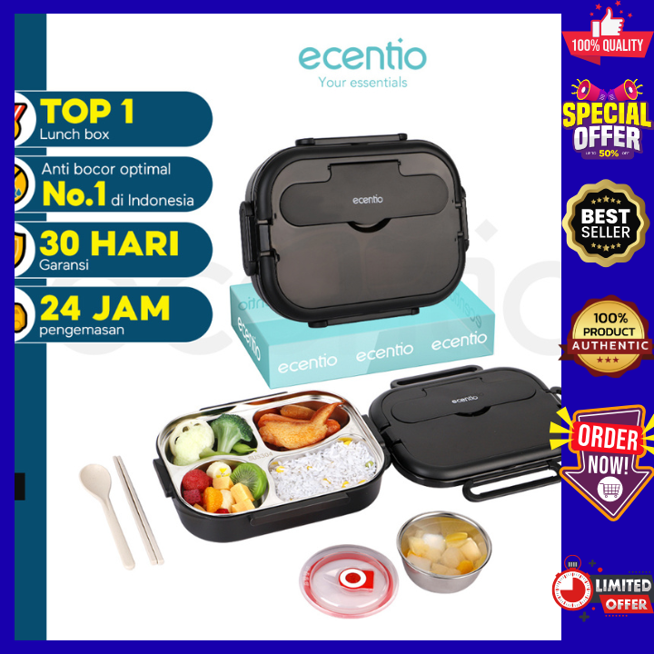 [Star]【Stainless 304】ecentio lunch box 1000ml stainless 304 sekat 4 dan anti tumpah