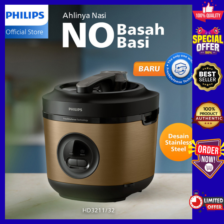 [Star]Rice Cooker Magicom 1.8 L - 3000 Premium Series HD3211/32 - Gold - Bakuhanseki Inner Pot - Anti lengket