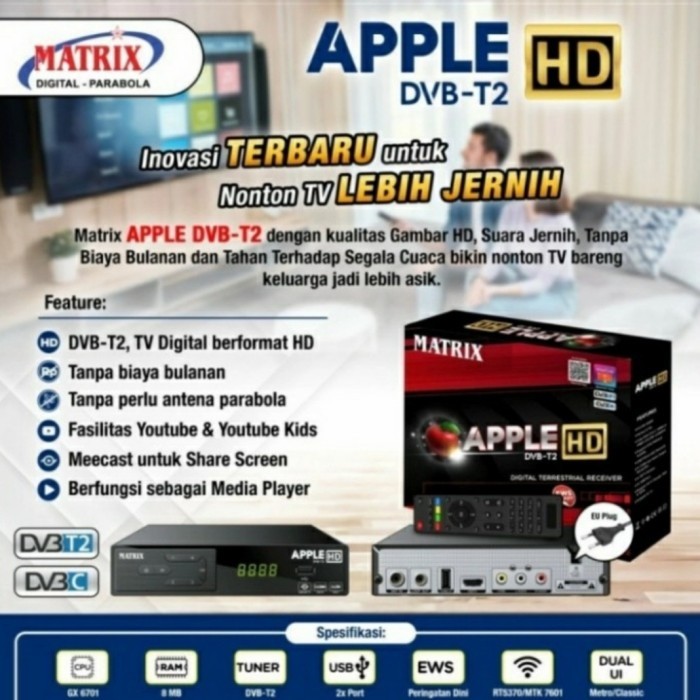 NEW STB RECIVIER TV STB DIGITAL MATRIK APPLE DVB T2 HD MERAH TERBARU