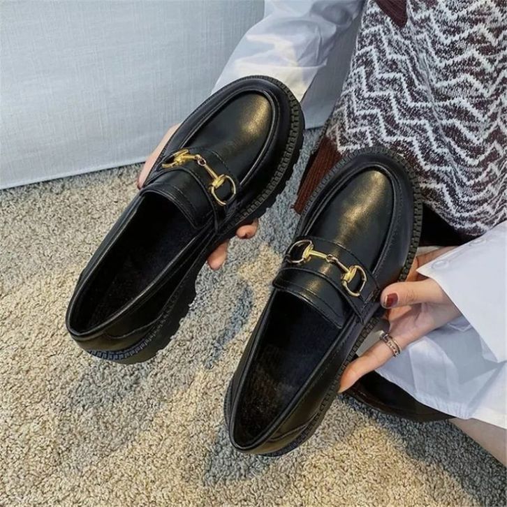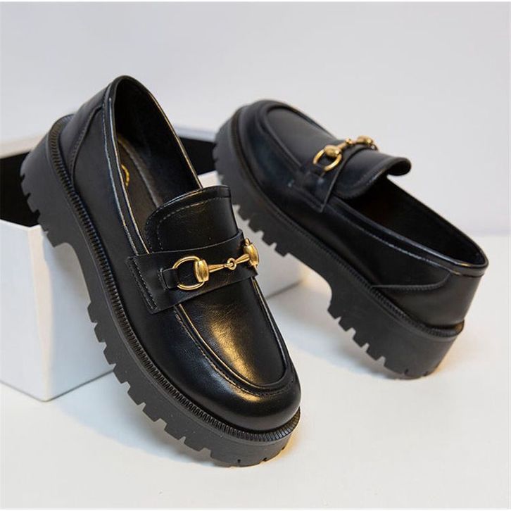 Sepatu Wanita Docmart Kasual Hitam / Sepatu Wanita Kulit Oxford Slip On Cewek Terbaru - cok166