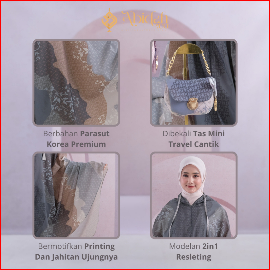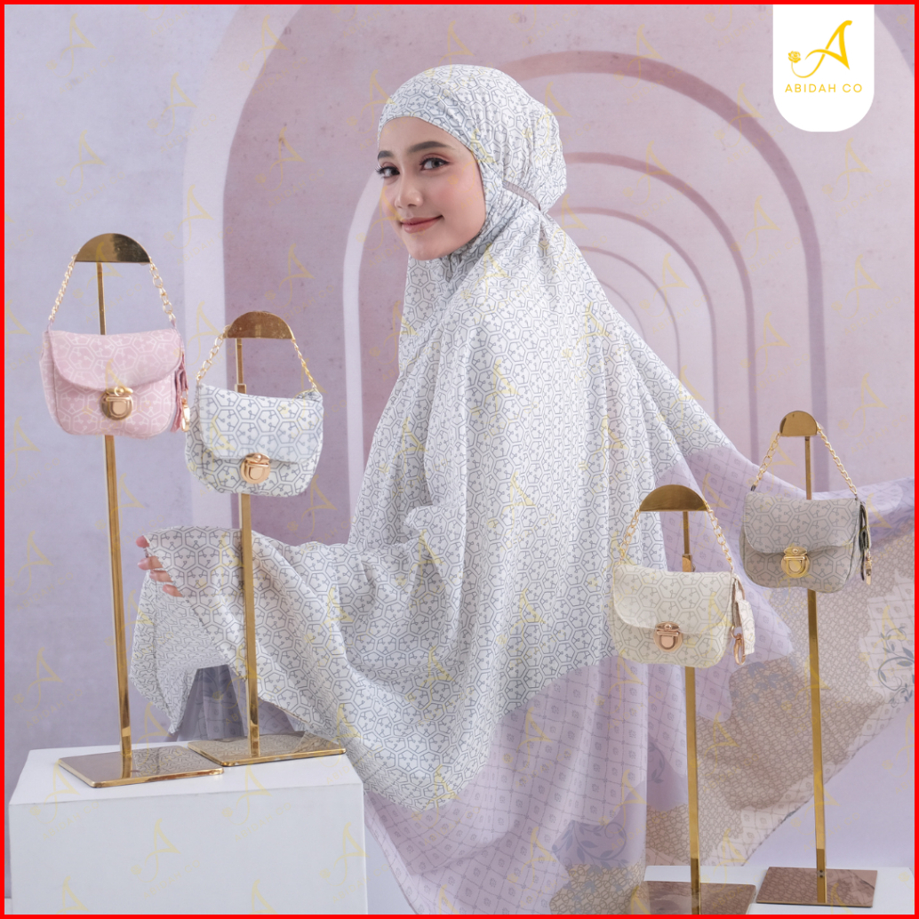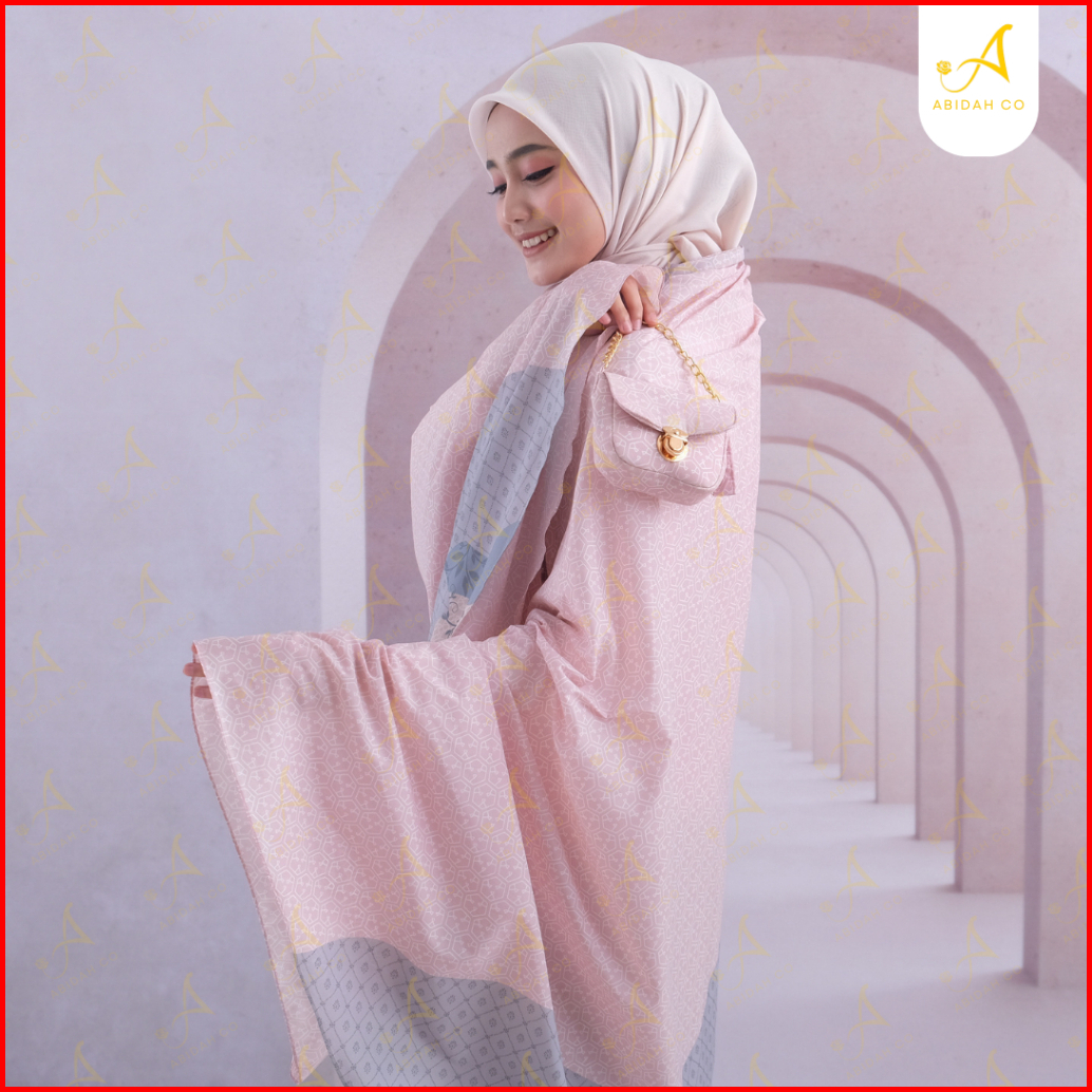 Abidah.co - Free Tasbih Mutiara Mukena Mini Parasut Travelling Motif Armania 2in1 Mukenah Trevel