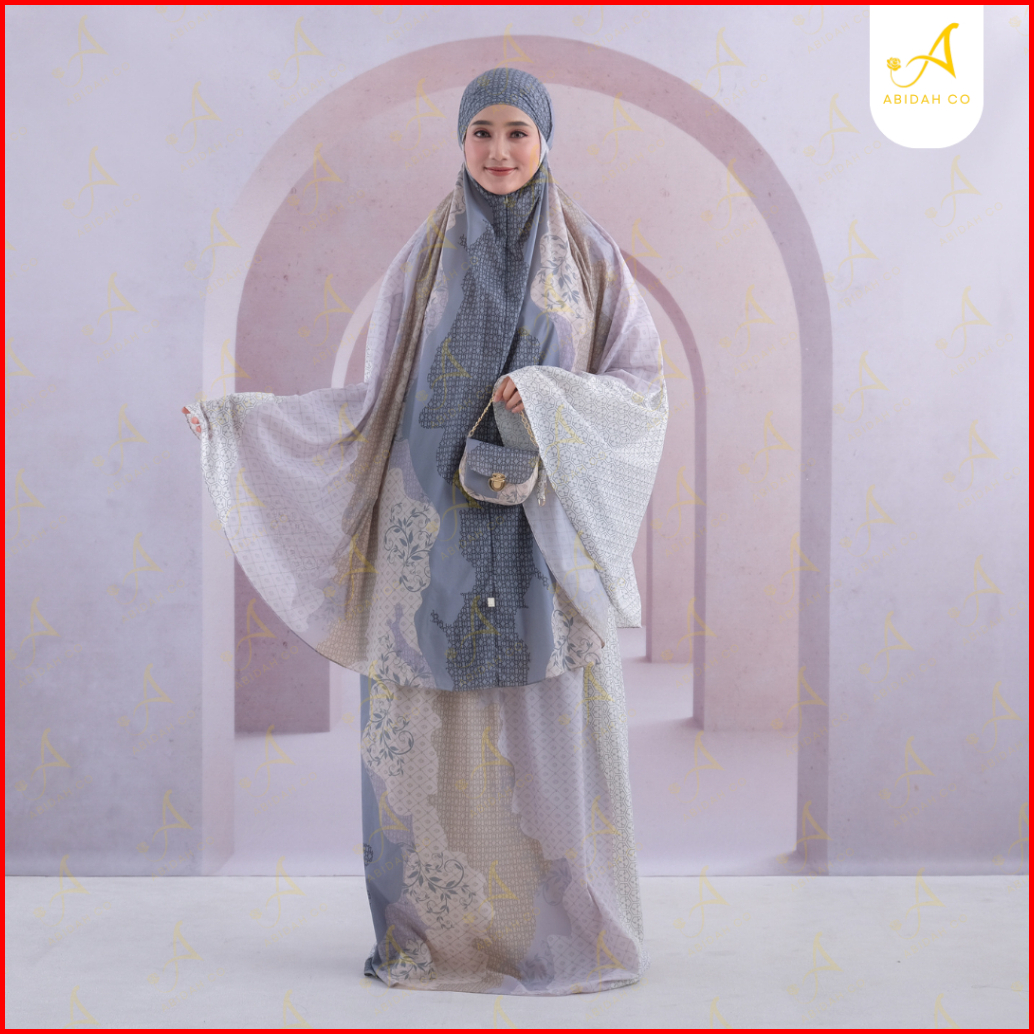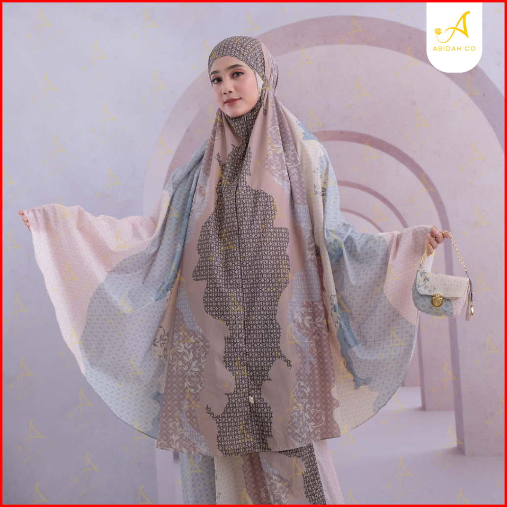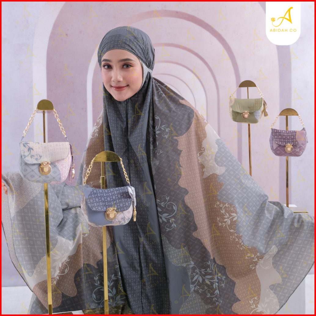 Abidah.co - Free Tasbih Mutiara Mukena Mini Parasut Travelling Motif Armania 2in1 Mukenah Trevel