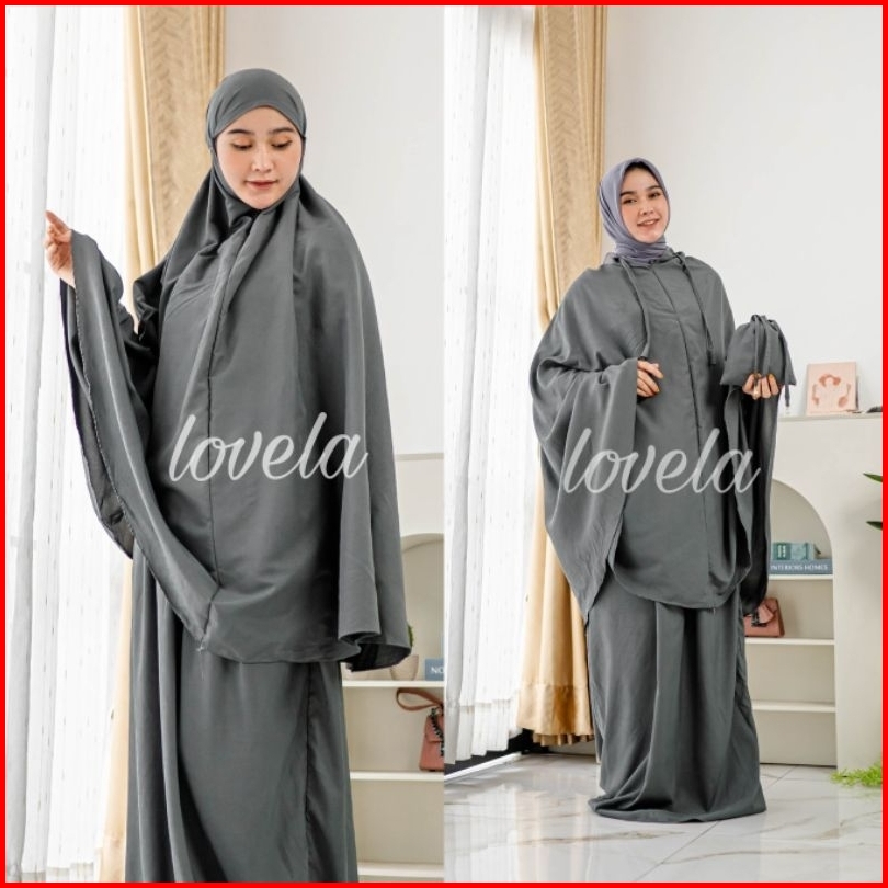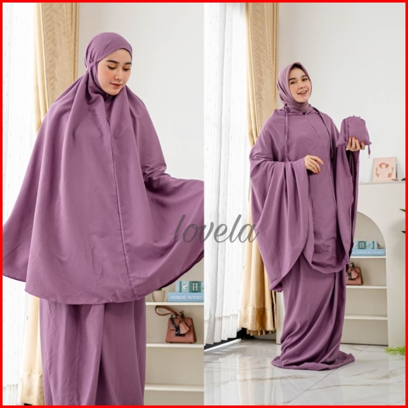 Lovela Mukena Dewasa Traveling 2 In 1 Resleting Polos Aura Series Pouch Mini Katun Premium