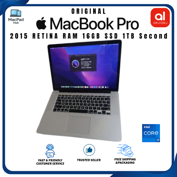 MACBOOK PRO 2015 RETINA 15 CORE i7 RAM 16GB SSD 1TB INTEL IRIS PRO MONTEREY MACBOOK SECOND MACBOOK ORIGINAL GARANSI