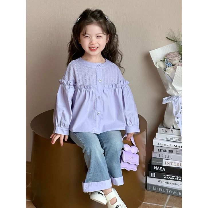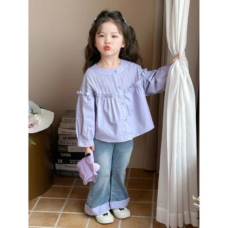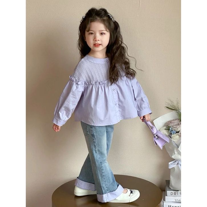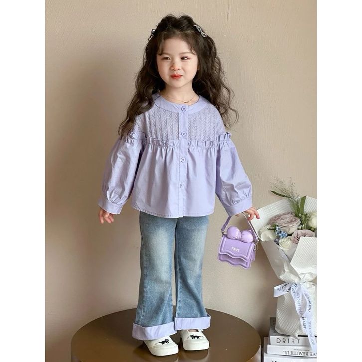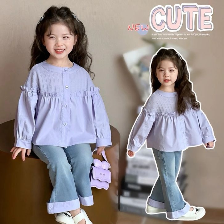 Setelan Anak Perempuan 2–10 Tahun Ungu Pastel Baju Anak Korean Style Celana Jeans Panjang Outfit Anak Cewek Lucu Modis