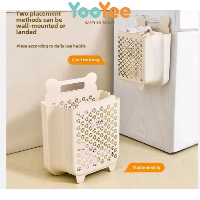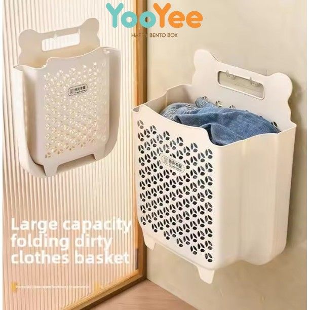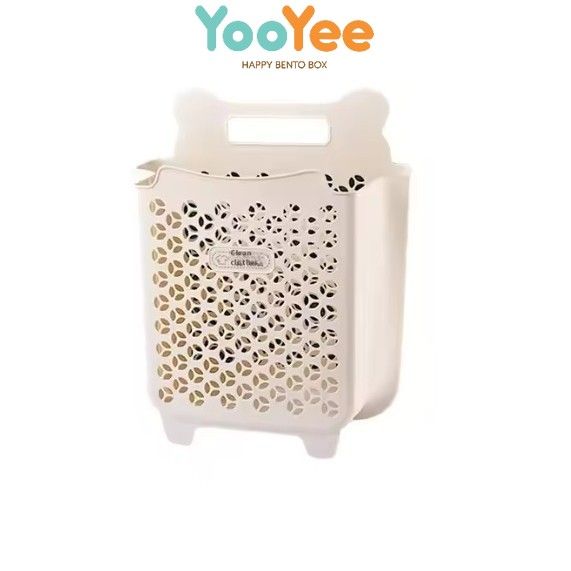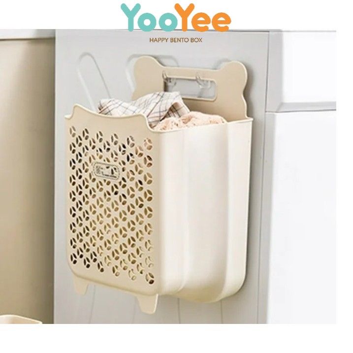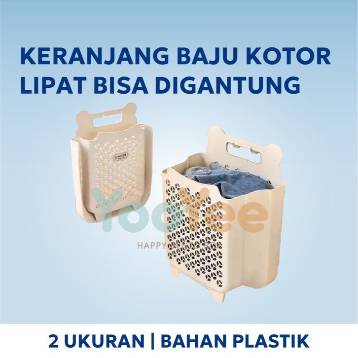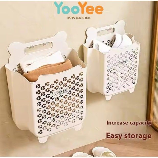 Keranjang Baju Kotor Plastik Lipat Pakaian Laundry Box Gantung Tempel Dinding Cream