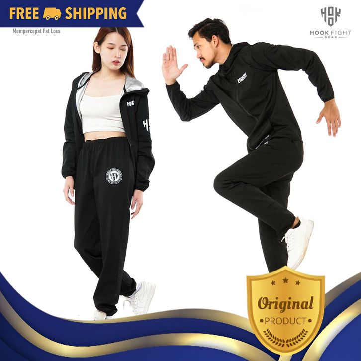[Mall] Jaket Sauna Suit Olahraga Baju Jas Pembakar Lemak Elastis Hook