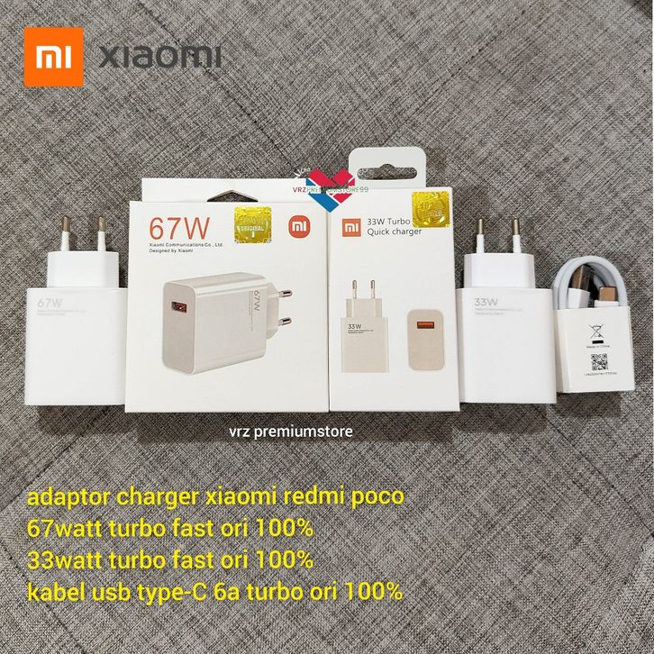 Adaptor xiaomi redmi 33w/67w usb type-C 6A turbo fast charging original