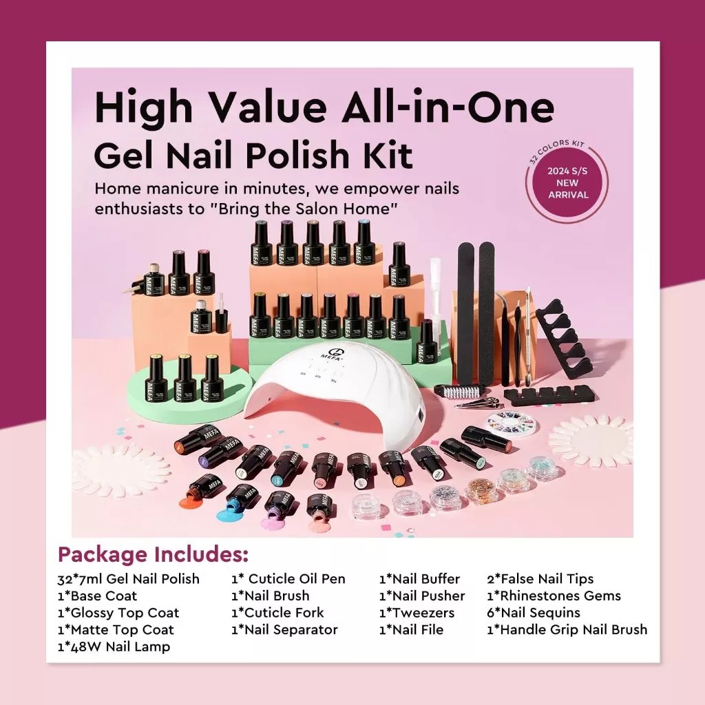 Nail Art Set Lengkap 32 Warna Gel Nail Polish 7ml UV LED Lamp 48W Gel Polish Matte Glossy Base Top Paket Manicure Salon