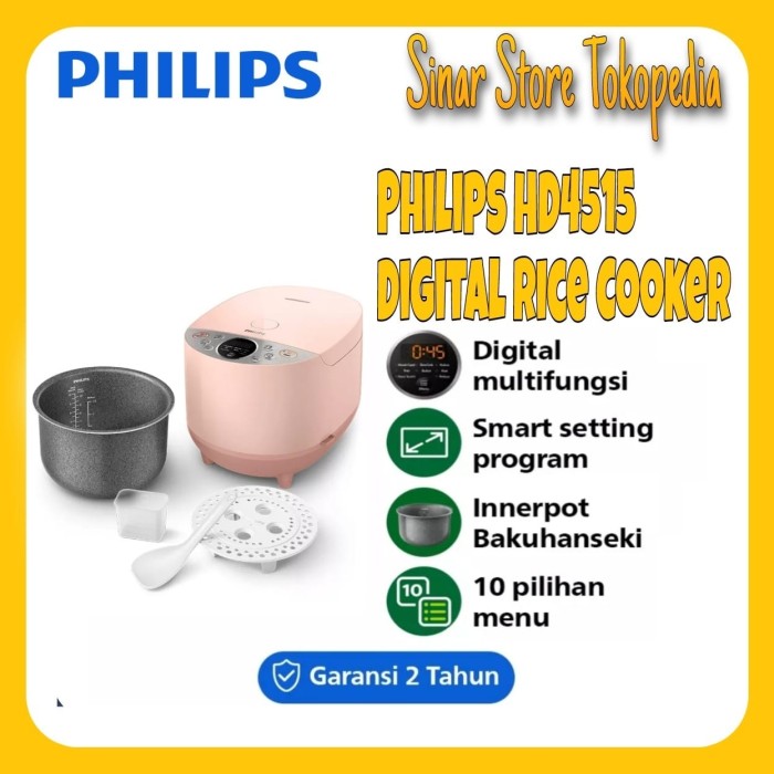 PHILIPS DIGITAL RICE COOKER 1.8L - HD4515 GARANSI RESMI - MERAH