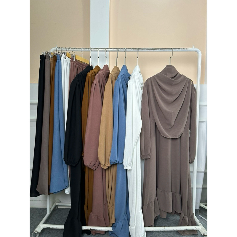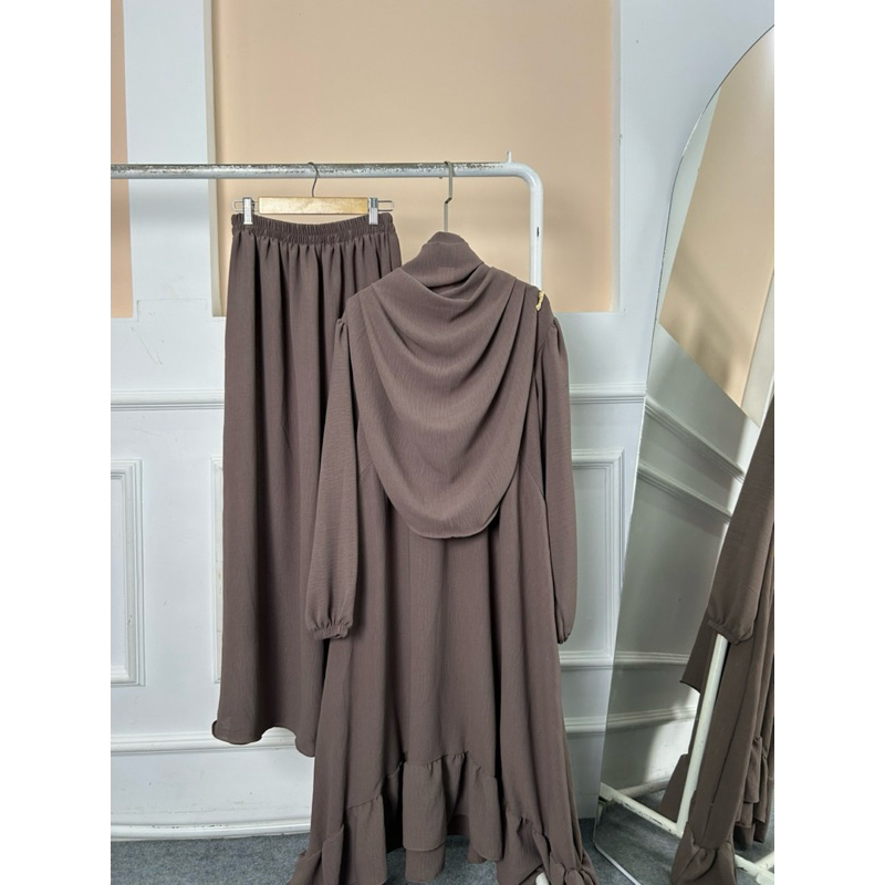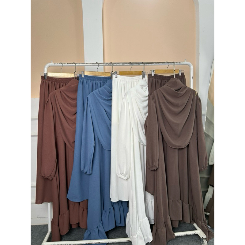 ONE SET GAMIS Alesha Set Rok Tunik Syar’i Pasmina Oval Wanita One Set Tunik Melayu Bahan Crinkle Airflow