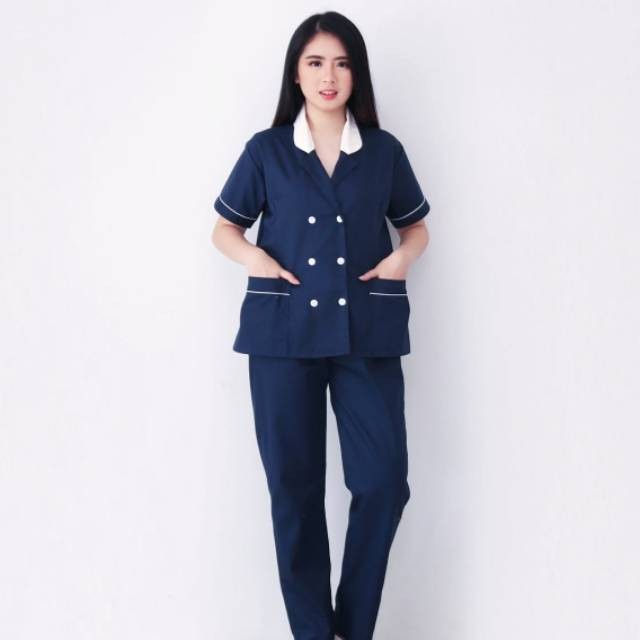 BAJU SUSTER KEIKO NAVY / SERAGAM BABY SITTER / BAJU NANNY - S