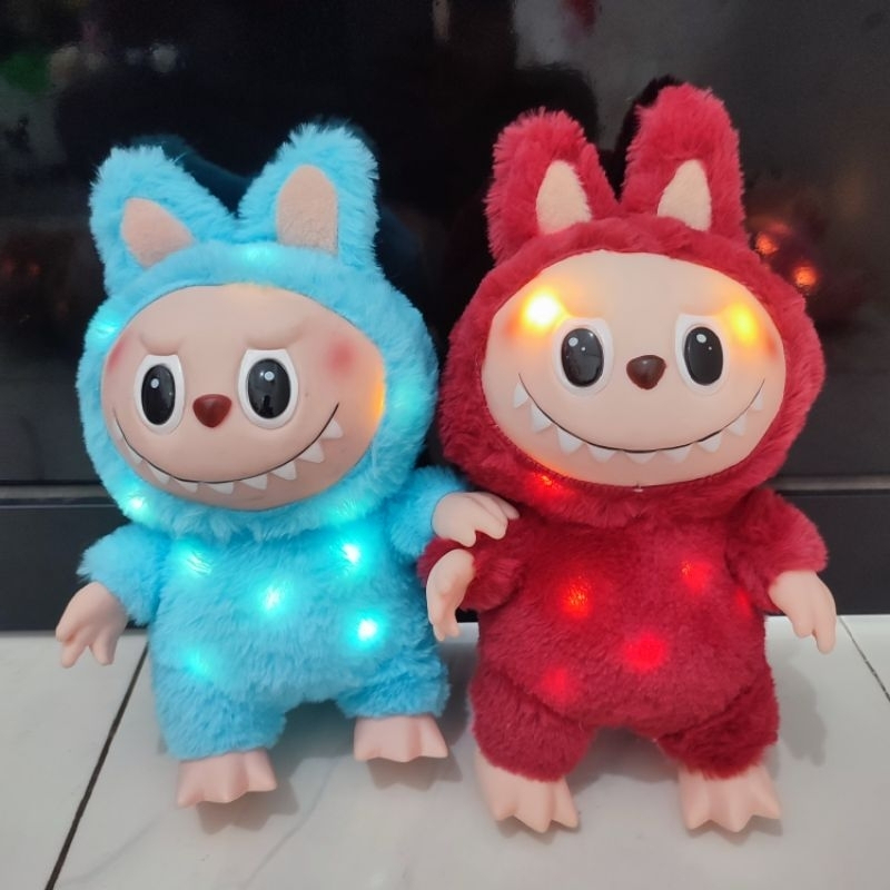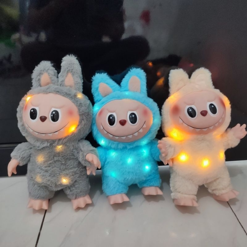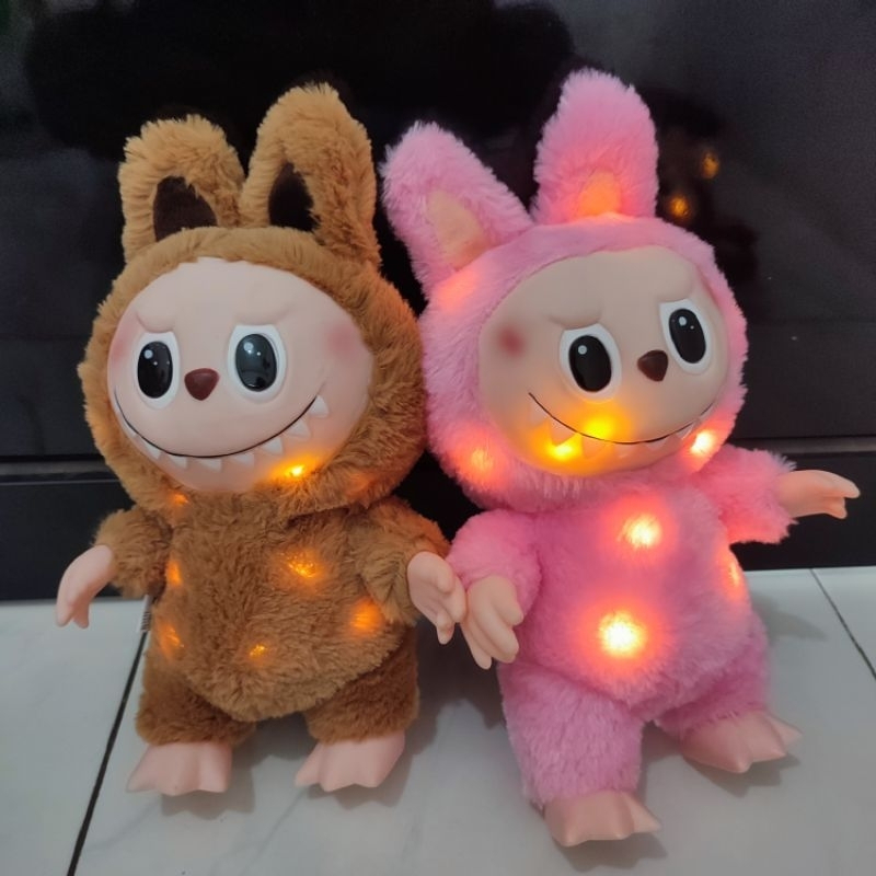 Boneka Labubu LED Menyala muka karet ukuran 35cm lembut kado ultah
